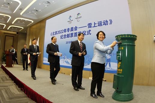 2018年11月16日,北京2022年冬奧會(huì)和冬殘奧會(huì)組委會(huì)(以下簡(jiǎn)稱(chēng)北京冬奧組委)與中國(guó)郵政集團(tuán)公司聯(lián)合舉辦了“《北京2022年冬奧會(huì)——雪上運(yùn)動(dòng)》紀(jì)念郵票首發(fā)儀式”,北京冬奧組委秘書(shū)長(zhǎng)韓子榮和中國(guó)郵政集團(tuán)公司黨組副書(shū)記李丕征共同為紀(jì)念郵票揭幕。