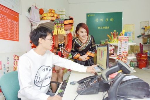 廣西壯族自治區(qū)灌陽縣郵樂購新衛(wèi)加盟店店主陳清雅幫“瑤妹”在郵樂網(wǎng)上挑選商品。