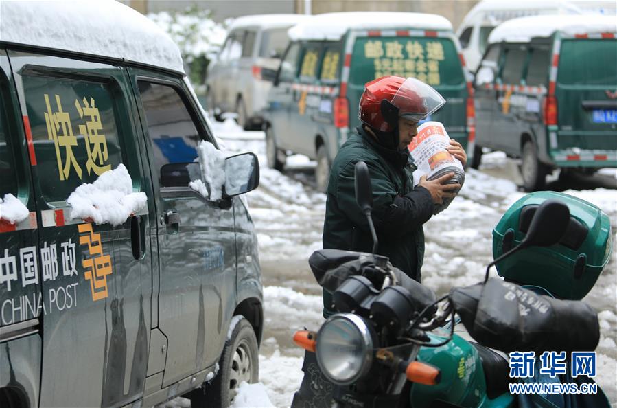 連日來,我國多地迎來降雪天氣,不少戶外工作者不懼嚴寒,堅守崗位。12月31日,在貴州玉屏侗族自治縣郵政局,投遞員姚茂賢準備投送剛剛送達的報紙。