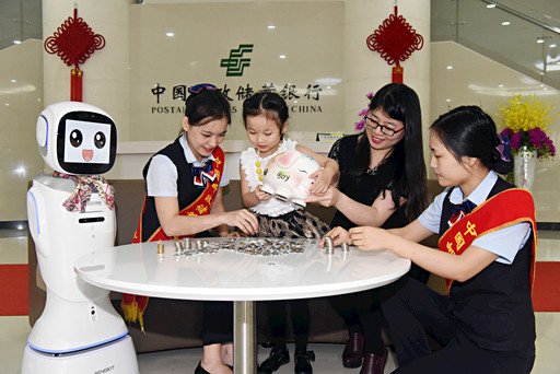 圖為帶著存錢罐的小姑娘在母親的陪同下到現金服務站兌換零散鈔。 □海南記者 梁磊 攝影報道