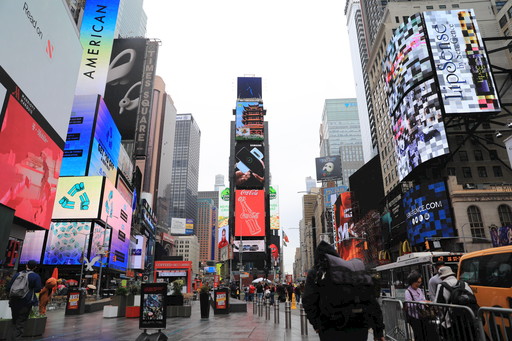 紐約時報廣場循環播放世界郵展宣傳片。新華社記者  張墨成  攝