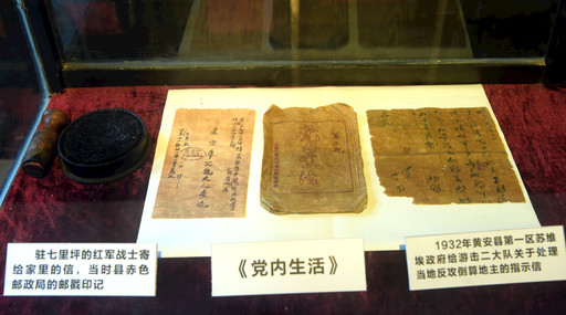 紅安縣赤色郵政局里,展示著象征紅四方面軍、紅二十五軍、紅二十八軍“三軍合一”的紅旗以及《小平您好》《中國夢(mèng)》《中國工農(nóng)紅軍長征勝利八十周年》等紅色郵品;懸掛著《董必武同志誕生一百周年》《徐向前同志誕生九十周年》《中國人民解放軍大將王樹聲》等紀(jì)念郵票;陳列著黨在土地革命時(shí)期的指示信、紅軍家書和赤色郵政工作服、郵包、郵戳、草鞋、蓑衣、斗笠等用品用具,已有數(shù)千人到此接受愛國主義教育。