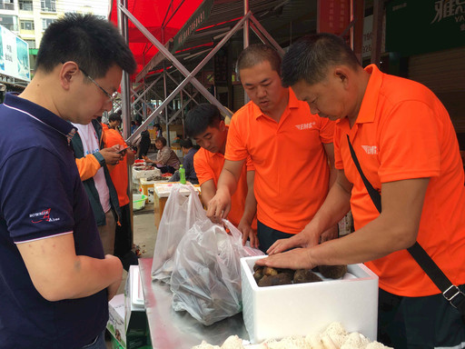 7月4日,云南省郵政分公司在昆明、麗江、迪慶、大理、楚雄五地聯動舉行松茸供應鏈解決方案推介會,以進一步拓展野生菌寄遞市場。在昆明木水花野生菌交易市場,昆明郵政設立了野生菌收寄點,為客戶提供一條龍的寄遞服務。商戶楊杰說:“現在EMS速度很快,基本上當天上午寄的第二天中午客戶就收到了。”圖為昆明EMS攬投員正在為客戶封裝野生菌郵件。 □云南記者 楊曉穎 攝影報道