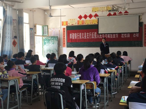 揚眉鎮支行員工進校園為學子送去金融知識。
