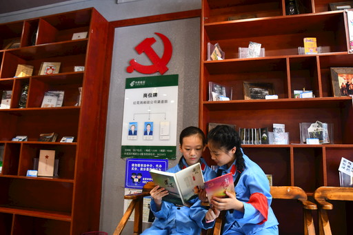 穿著紅軍裝的兒童在郵冊(cè)上了解紅色遵義。