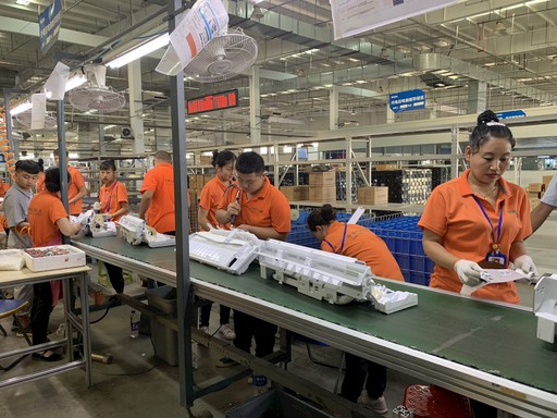 山東郵政為海爾企業(yè)提供綜合型物流服務(wù)。圖為膠州空調(diào)二期的工作人員正在組裝空調(diào)產(chǎn)品內(nèi)機送風模塊。崔鵬森 攝