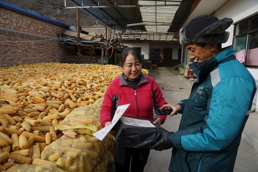 郵員把報刊和包裹送到村民手上。