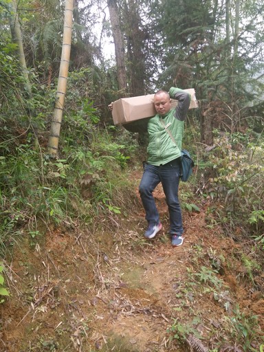 楊建華翻山越嶺投遞包裹。