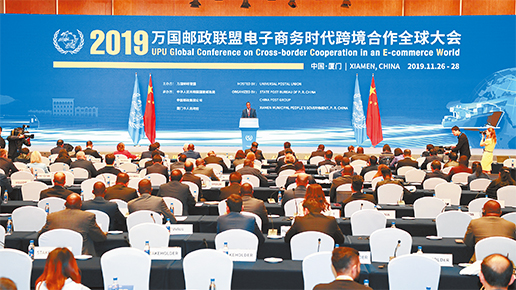 交流互通、開放共享。11月26日,2019萬國郵政聯盟電子商務時代跨境合作全球大會在福建廈門召開。這是萬國郵聯與中國聯合舉辦的首個以跨境電商全球合作為主題的大會,由萬國郵聯主辦,國家郵政局、中國郵政集團公司和廈門市政府聯合承辦。中國郵政集團公司董事長劉愛力出席開幕式并致辭。