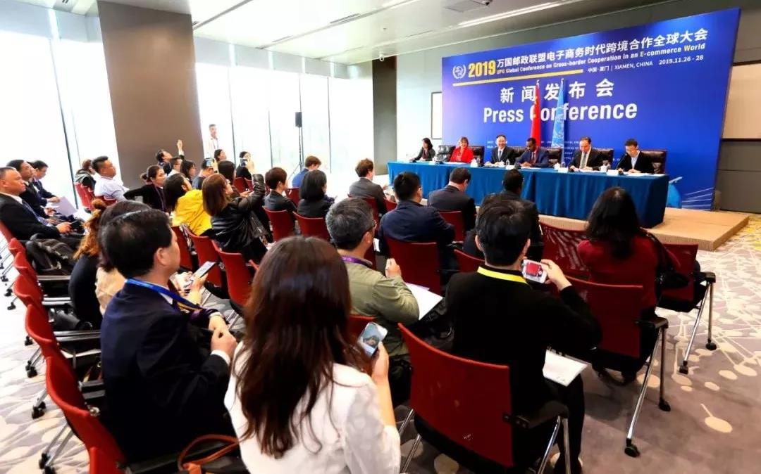 11月26日,萬國郵聯(lián)國際局總局長比沙爾·侯賽因、世界海關(guān)組織守法便利司司長安娜·伊諾霍薩、中國國家郵政局局長馬軍勝、中國郵政集團(tuán)公司副總經(jīng)理張榮林出席萬國郵聯(lián)電子商務(wù)時代跨境合作全球大會新聞發(fā)布會,圍繞增進(jìn)全球郵政、海關(guān)、鐵路、航空和跨境管理機(jī)構(gòu)之間的合作,發(fā)展完善全球郵政網(wǎng)絡(luò),促進(jìn)郵政供應(yīng)鏈的安全和便利化,推進(jìn)國際鐵路運(yùn)郵,推動跨境電商和全球貿(mào)易可持續(xù)發(fā)展等主題向記者進(jìn)行了介紹并回答記者提問。