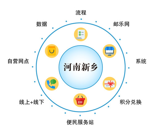 河南省新鄉市郵政分公司通過建立平臺運營機制,線上以郵樂網為依托,打通了系統、數據和流程;線下以自營網點和便民服務站為觸點,搭建了線上線下融合發展的場景,以積分兌換為紐帶,建立了“網點+站點”的經營模式,實現了企業發展由“經營業務”向“經營平臺”的轉變,為郵政農村電商平臺建設和平臺效益的打造提供了范本。