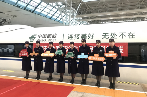 1月8日,中國郵政“連接美好 無處不在”高鐵冠名列車首發儀式在上海虹橋站舉行。隨著列車緩緩駛出,中國郵政與中國高鐵強強聯合,守護每位春運旅客的歸家路。