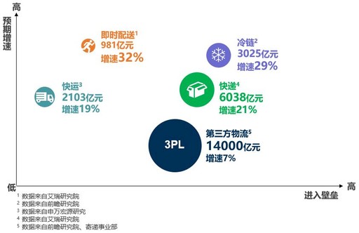 圖5 綜合物流細(xì)分市場預(yù)期增速及進(jìn)入壁壘