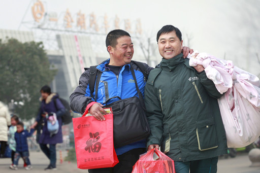 在車站、城鄉郵政網點等活動現場,金湖縣分公司志愿者在為返鄉務工人員提供便民服務的同時,向其贈送內含春聯、窗花、“福”字的迎春禮包,并發放《法律法規知識手冊》《勞動合同知識普及手冊》等相關政策法規資料以及《郵政便民服務手冊》《預防電信詐騙手冊》等便民資料。圖為金湖縣分公司投遞員王波接呂良鎮返鄉務工人員凌久權回家。□吉爾云 攝影報道
