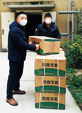 武漢抗擊疫情的主戰場之一——金銀潭醫院就位于東西湖區,因此,春節期間相關物資的運送任務特別繁重。張虎始終堅守在疫情防控的前線,他除了搶運防疫物資,還時刻關注著公司每一位員工的身體狀況,堅持早晚兩次電話詢問營業部防疫情況,并及時將最新了解的疫情資訊發布在微信群內。他心系堅守在投遞一線的投遞員,只要有時間就會到5個營業部查看投遞員的自我防護工作、車輛和投遞現場的消毒工作。