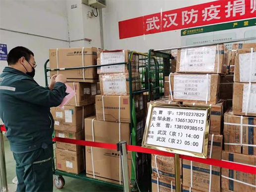 1月25日,中國(guó)郵政開(kāi)通了防疫捐贈(zèng)物資免費(fèi)運(yùn)輸和配送的綠色通道。除了專(zhuān)機(jī)運(yùn)輸外,從北京出發(fā)的陸運(yùn)物資都是通過(guò)北京郵件綜合處理中心發(fā)往武漢。