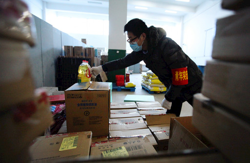 符國威在整理貨物。