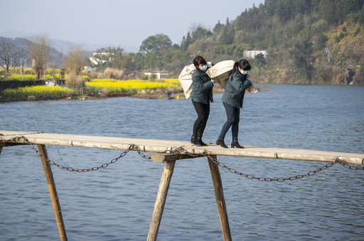 人民有呼喚,服務不間斷。自新冠疫情發生以來,江西郵政始終站在講政治的高度,堅定不移地主動承擔好企業的政治責任、社會責任,增強政治自覺、強化責任擔當,不折不扣地完成黨和國家交辦的普遍服務任務。圖為婺源縣江灣郵政所兩位女投遞員在封村封路期間,每天肩扛幾十公斤重的郵包步行投遞郵件,做到郵件不中斷、服務水平不下降。□龍景君  鄒國高  攝影報道