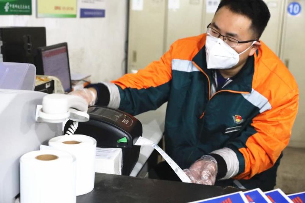 在青島各區市郵政公司攬投部,郵政工作人員根據政務網接收的投遞信息認真核對,并打印快遞單,依次粘貼在裝著口罩的快遞袋上,然后根據地址分配給負責相應投遞段道的投遞員。