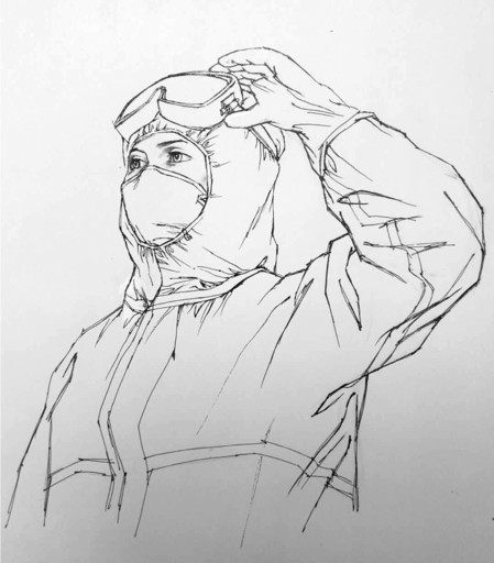 《眾志成城 抗擊疫情》郵票中醫護工作者草圖。