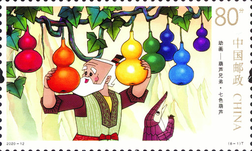 《動(dòng)畫—葫蘆兄弟》郵票的6枚圖案名稱分別為:七色葫蘆、夢(mèng)窟迷境、絕路逢生、水火奇功、巧奪如意、七子連心,是中國郵政發(fā)行、宋鑒設(shè)計(jì)的第三套動(dòng)畫題材郵票。前幾年發(fā)行的《小蝌蚪找媽媽》和《動(dòng)畫—〈大鬧天宮〉》兩套動(dòng)畫題材郵票均為宋鑒設(shè)計(jì)。