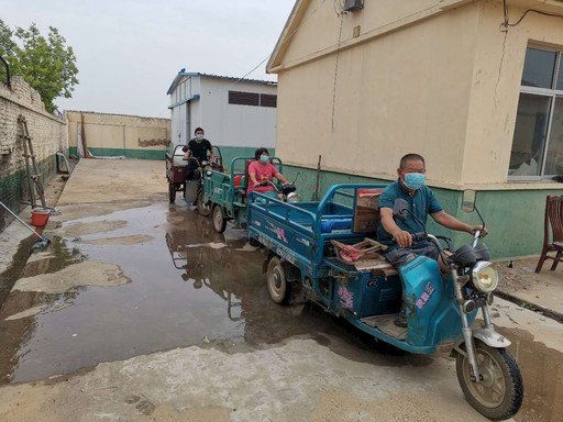 當地百姓騎著三輪車到支局打水。