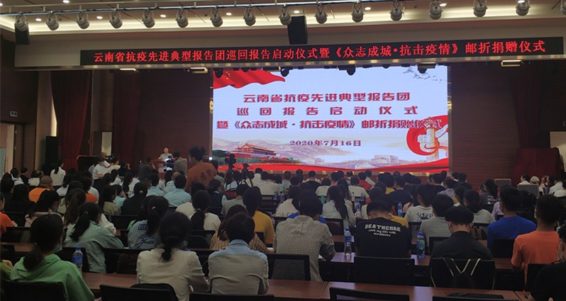 2020年7月16日,云南省抗疫先進典型報告團巡回報告啟動儀式暨《眾志成城抗擊疫情》郵折捐贈儀式在昆明醫(yī)科大學(xué)第二附屬醫(yī)院舉行。