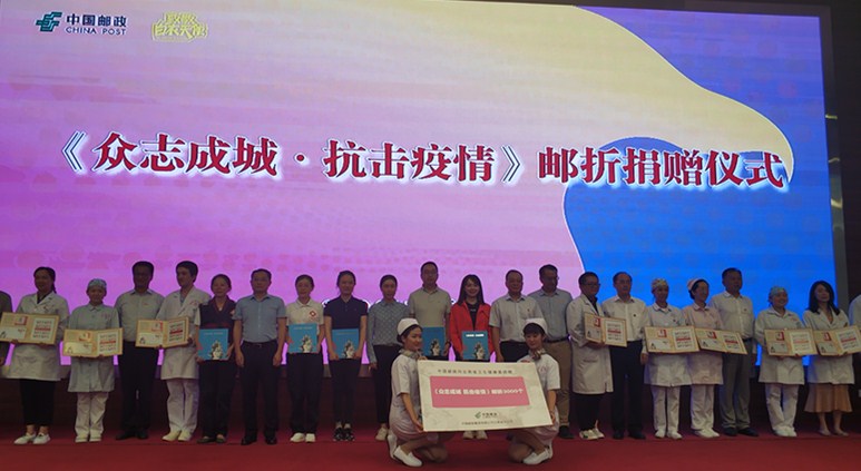 活動中還舉行了《眾志成城?抗擊疫情》郵折捐贈活動,一直以來,中國郵政堅持以發(fā)行郵票的方式紀念、支援國家發(fā)生的重大災(zāi)害、重大疫情,并將郵票發(fā)行收入捐獻用于救災(zāi)抗疫。此次中國郵政將向中國紅十字會總會捐贈郵票和郵品收入2800萬元,向奮戰(zhàn)在抗擊疫情一線的近30萬名醫(yī)務(wù)工作者捐贈價值1500萬元的定制郵折,共計4300萬元。這是近年來中國郵政發(fā)行抗疫救災(zāi)郵票捐贈額最高的一次。本次捐贈儀式上,中國郵政集團有限公司云南省分公司向云南省衛(wèi)生健康委捐贈《眾志成城 抗擊疫情》郵折3000個。