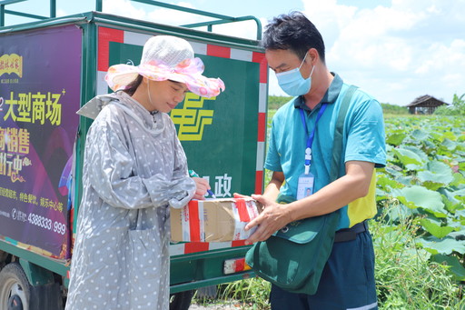 7月22日,是我國農歷的大暑節氣。近日,廣西壯族自治區貴港市氣溫持續攀升,最高溫度達37攝氏度。為了把郵件及時、快速、準確地送到群眾手中,郵政員工在炎炎烈日下,電話不離手,腿腳不停歇,確保郵件安全送達。圖為湛江鎮郵政支局投遞員到荷花田里送郵件。 □覃東新 攝影報道