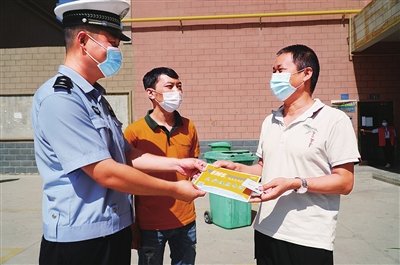 庫(kù)爾勒市交警與巴州分公司員工上門送證送牌。