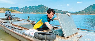 蜿蜒的水路,是通向庫區各村莊的重要通道。每周一、三、五清晨,天未亮,劉保朝就得出家門,趕到幾十里外的鎮郵政支局,拿取信件、包裹,然后駕駛小船向庫區深處行進。