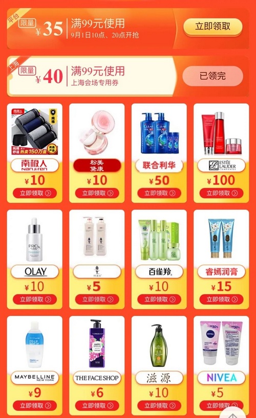 可領(lǐng)取50減10及30減5專(zhuān)場(chǎng)優(yōu)惠券