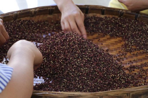 漢源椒農(nóng)采摘花椒一般選在晴天,采收的椒果干制后,色澤鮮、香氣濃、麻味足。采收技巧也非常有講究,需一穗穗小心摘下,否則壓破花椒油胞,花椒干制后就色澤暗褐,香麻味減,影響花椒質(zhì)量,可以說,每一粒精心采收的花椒里,都飽含著椒農(nóng)對收獲的喜悅和珍惜。