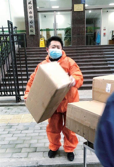 抗疫關(guān)頭,徐龍為醫(yī)院投遞防疫物資。