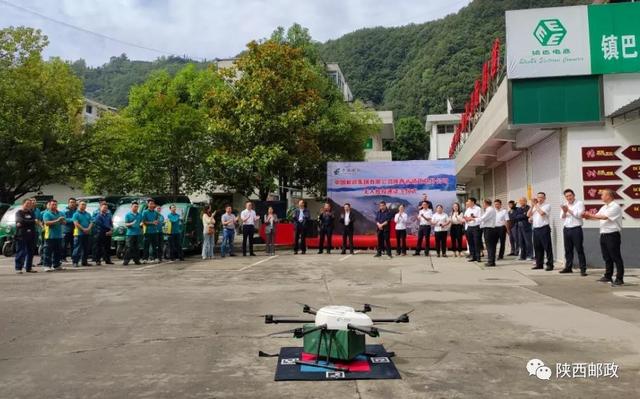 9月17日上午10點(diǎn),陜西郵政首條無人機(jī)郵路“鎮(zhèn)巴-草壩”開通儀式,在漢中鎮(zhèn)巴分公司院內(nèi)舉行。