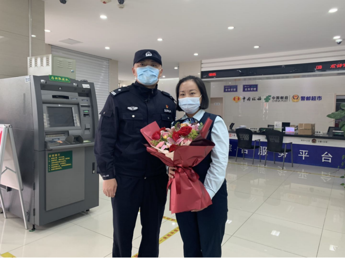 “感謝你積極出手攔截了這起電信詐騙,挽救了一個家庭。”10月14日,浦口公安分局珠江派出所的民警及見義勇為珠江工作站一行人來南京浦口郵政分公司珠江支局,為理財經理顏燕獻上鮮花,并授予“見義勇為積極份子”稱號,以表彰其在防止客戶遭受電信詐騙中做出的努力和貢獻。
