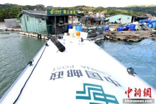 11月12日,石進全開著快艇穿梭在三都澳海上漁村。“雙十一”剛過,福建省寧德市蕉城區海上郵遞員石進全比往常更加忙碌。作為三都澳海域唯一的海上郵遞員,他要服務周邊上千戶漁排人家以及4座海島上8個行政村的信件和包裹。石進全的父親曾搖著櫓為鄉親服務了23年,子承父業的他,也已經在這條海上郵路走了20多年。
