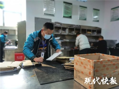 “干了快13年了,每天都要有四五個小時是在干這個,熟能生巧?!崩钤鞲嬖V記者,從2008年開始,他每天早晨7點半左右就會到公司這里開始分揀包裹、信件,在正式送件之前,他有一個半小時的時間把每天要送的報刊、信件、包裹分類好,蓋上郵戳。