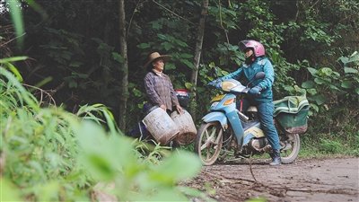 上坡、下坡、再上坡……由于當天大霧加上小雨,盡管符蓮香對這條路熟悉得不能再熟悉,但為了將郵包完好無損地送到村民手中,她騎得比平時更加小心。