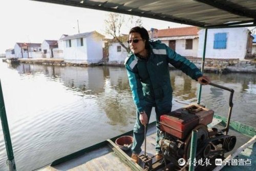 早上八點半,南陽湖上托起太陽,湖面波光粼粼。王少朋背著綠色的郵差包,路過賣早點的、賣鮮魚的,踩著青石板,穿過幾條巷子來到碼頭。“一年當中,冬天最難熬,穿再厚都能凍透。今天天氣已經算是很好了。要是遇到雨雪天、大風大霧,那就麻煩了?!贝藭r,微山縣氣溫3攝氏度,湖上溫度要比這低好幾度。