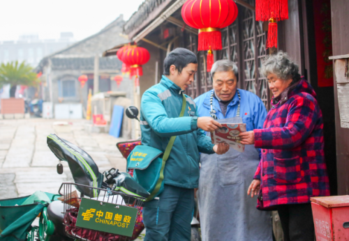 “嘟嘟嘟……”1月29日,天邊剛泛魚(yú)肚白,如皋市搬經(jīng)鎮(zhèn)大街小巷就響起了熟悉的車(chē)?yán)嚷暋`l(xiāng)郵員趙穎東駕駛著一輛綠色“小面包”,熟練地穿行于田間地頭。當(dāng)天,他要送達(dá)的,除了幾百斤重的報(bào)紙、信件、包裹,還有一份份沉甸甸的“紅色大禮包”。