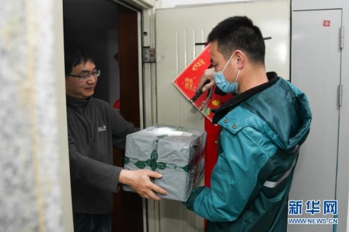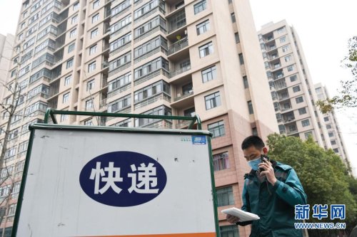 2月11日,中國郵政攬投員劉元元在安徽省合肥市青陽路社區一處居民小區內派送快遞。當日是除夕,不少行業的工作人員依然堅守崗位,在工作中迎接春節的到來。