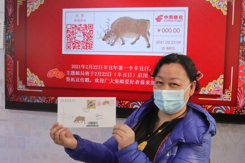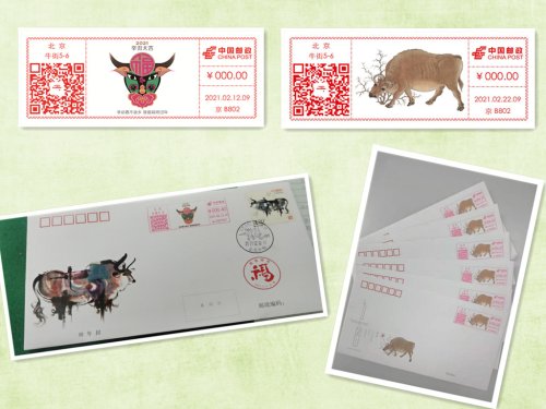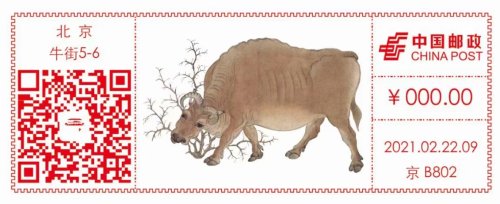 2月22日是辛丑年第一個辛丑日,北京郵政啟用了第一枚《五牛圖》郵資機彩色宣傳戳,并首次嘗試郵資機宣傳戳產品線上定時寄預約實寄服務。