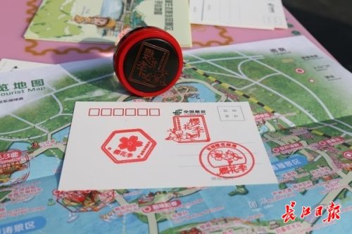 另外,櫻花郵局專門打造了東湖風景紀念戳、賞櫻地標戳等18款專屬紀念戳。賞櫻期間,游客可在櫻花郵局領取一張手繪地圖,集齊5處指定地標的紀念戳,即可領取一份專屬櫻花禮品。