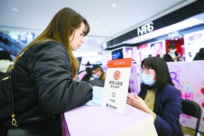 新世界城的收銀臺上已擺放數字人民幣的宣傳材料。