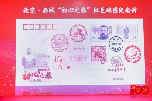 為紀念這一活動,西城區分公司設計推出了“初心之旅”紅色地圖發布紀念封一枚和紀念戳一套六枚。紀念戳分別在天橋印象博物館主會場,京報館(邵飄萍故居)、李大釗故居、西城紅墻意識黨性教育基地三處分會場提供紀念郵戳加蓋服務。