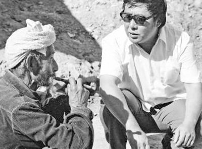 路遙(右)在陜北農(nóng)村走訪(fǎng)。新華社記者 姚宗儀攝