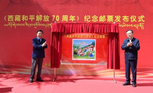 在西藏各族人民喜迎西藏和平解放70周年之際,8月16日,《西藏和平解放70周年》紀念郵票發布儀式在拉薩舉行。西藏自治區副主席甲熱·洛桑丹增,中國郵政集團有限公司黨組書記、董事長劉愛力致辭,并共同為《西藏和平解放70周年》紀念郵票揭幕。中國郵政集團有限公司副總經理康寧,西藏自治區、集團公司相關部門負責同志出席。