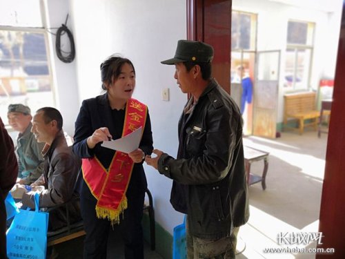 郵儲銀行工作人員下鄉給村民講解貸款政策。郵儲銀行河北省分行供圖