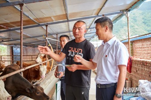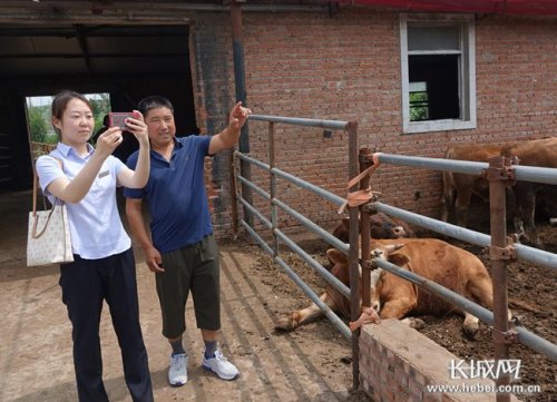 郵儲銀行工作人員深入養殖戶牛舍了解養殖情況和貸款需求。長城網記者 吳新光 攝